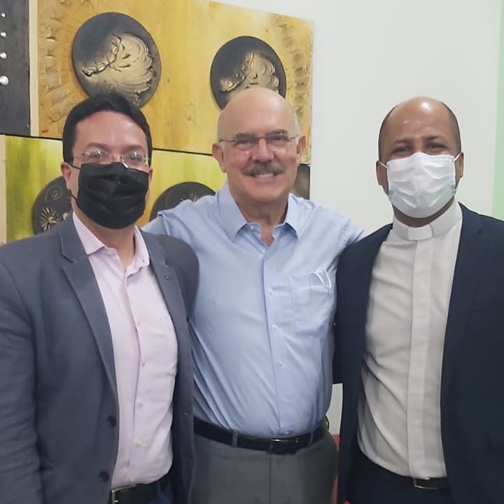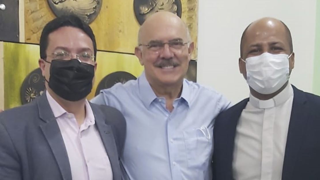 📷 Foto 01: Marcelo Ponte (Presidente do FNDE), Milton Ribeiro (Ministro da Educação) e padre Edson de Oliveira.