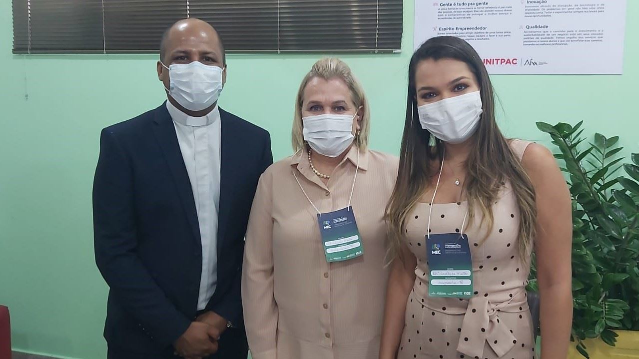 📷 Foto 02: Padre Edson de Oliveira, Dra. Ângela Maria (Diretora Geral da Faculdade Facit) e Dra. Carollyne Mota (Vice-diretora da Faculdade Facit).